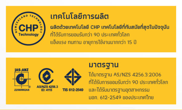 ผลิตด้วยเทคโนโลยีจากประเทศนิวซีแลนด์ ได้มาตรฐาน AS/NZS 4256.3:2006 ID:4115 ที่ได้รับการยอมรับกว่า 90 ประเทศทั่วโลก สามารถป้องกันรังสี UV ได้มากกว่า 99%