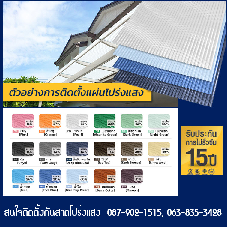 แผ่นหลังคาโปร่งแสงเป็นวัสดุประเภทหนึ่ง ที่มีให้เลือกหลากหลาย มีทั้งชนิด ที่เป็นแผ่นโปร่งแสงไฟเบอร์กลาส แผ่นโพลีคาร์บอเนต แผ่นกระจก แผ่นอะคริลิค หลายท่านที่กำลังจะติดตั้งกันสาด