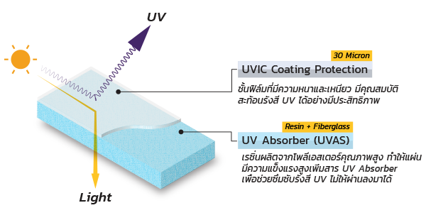 มีเทคโนโลยี UVIC Coating Protection ซึ่งเป็นชั้นฟิล์มที่ช่วยป้องกันรังสี UV ได้อย่างมีประสิทธิภาพ ป้องกันรังสี UV ได้มากถึง 99% รับประกันไม่รั่วซึมยาวนานถึง 15 ปี